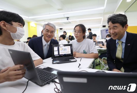 디지털 활용 수업 참관하는 이주호 사회부총리 겸 교육부 장관. /뉴스1 ⓒ News1 윤일지 기자 |