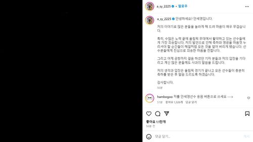 협회 보도자료가 나오고 하루 뒤 안세영은 SNS를 통해 사과문을 올렸다. 안세영은 "수많은 노력 끝에 올림픽 무대에서 활약하고 있는 선수들에게 가장 죄송하다. 제 이야기로 많은 분들을 놀라게 해 드려 마음이 매우 무겁다"며 "제 발언으로 축하와 영광을 마음껏 누리셔야 할 순간들이 해일처럼 모든 것을 덮어 버리게 됐다. 선수분들에게 진심으로 죄송한 마음을 전한다"고 말했다.