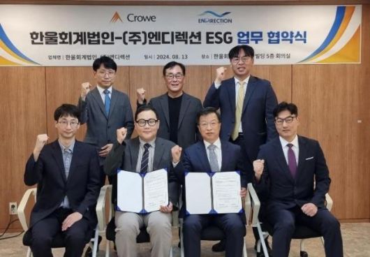 한울회계법인(이하 한울)은 엔디렉션과 ESG 관련한 컨설팅 서비스 전문성 강화를 위한 업무협약을 체결했다고 13일 밝혔다.