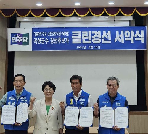 (곡성=연합뉴스) 박철홍 기자 = 오는 10월 16일 치르는 전남 곡성군수 재선거 경선에 나서는 더불어민주당 예비후보들이 공정 경쟁을 약속했다.