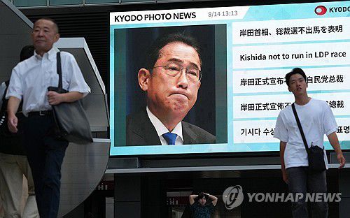 기시다 일본 총리, 총재 선거 불출마 보도 지나가는 행인들 |