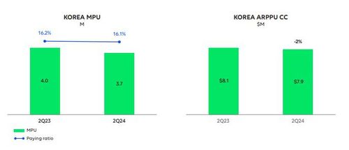 올 2분기 한국의 ARPPU는 7.5달러(약 1만280원)로, 전년 동기 8.3달러 대비 9.9% 감소했다.