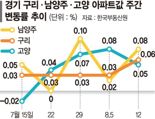 경기 북부 지역 부동산 시장의 온도차가 커지고 있다. 최근 개통한 지하철 8호선 별내선 호재로 구리·남양주 일대에 훈풍이 이어지고 있는 반면 K-컬처밸리 무산 위기 등으로 고양 일대 집값은 1기 신도시 정비 호재에도 맥을 못추고 있다. 개발 사업 성패에 따라 부동산 시장 분위기도 상반된 모습을 보이는 것이다.