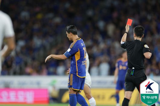 울산에 퇴장 악재가 닥쳤다. 스트라이커 주민규가 볼 경합 과정에서 팔꿈치를 써 다이렉트 퇴장을 당했다. 주민규는 전반 40분 이재원과 몸싸움 도중 팔꿈치를 휘둘렀고, 비디오판독(VAR) 결과 레드 카드를 받았다.