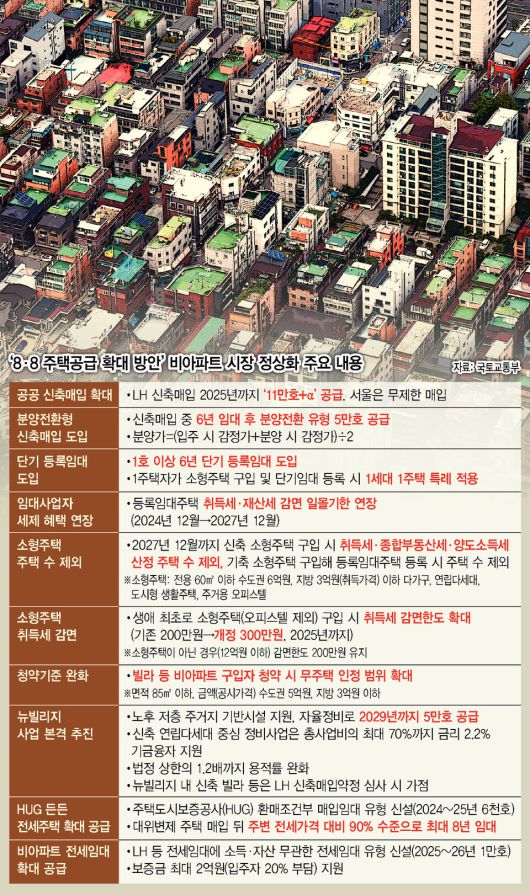 정부가 최근 ‘8·8 주택공급 확대 방안’을 내놓고 빌라(다세대·연립), 오피스텔 등 비아파트 시장 정상화를 위한 총력전에 나섰다. 전세사기 여파로 거래가 줄고 공급이 급감하는 등 최악의 침체를 겪고 있는 빌라, 오피스텔 등 비아파트에 대한 청약·세제·금융 등 폭넓은 지원을 통해 수요자 선호도를 높이고 신축 물량도 늘리겠다는 취지다.