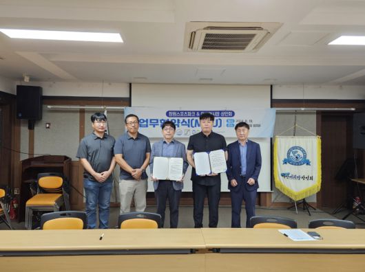 이날 협약식에는 창원시티투어버스 담당부서인 창원스포츠파크 박상현 팀장과 천태문 마산어시장 상인회장 등 10여명이 참석했다.