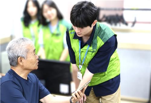 ▲ 코오롱그룹의 정보기술(IT) 서비스 전문기업 코오롱베니트가 최근 IT에 취약한 노년층을 대상으로 스마트폰 교육을 실시했다. 교육은 인턴사원들이 주도해 19일까지 과천종합사회복지관에서 문자·전화·사진 등의 기초 기능부터 애플리케이션 설치, 교통 앱, 메신저 사용 등의 내용으로 약 8주간 진행됐다. (서울=연합뉴스)