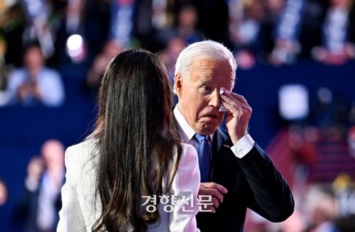 무대에 오른 바이든 대통령은 자신을 소개한 딸 애슐리를 포옹한 뒤 티슈를 꺼내 눈물을 닦아냈다. 그는 자신의 대선 후보 사퇴 결정에 대해 “나는 내 일을 사랑하지만 내 나라를 더 사랑한다”며 “나보고 물러나라고 한 사람들에게 내가 화가 났다는 건 사실이 아니다”라고 말했다.