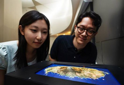 이번 전시에서는 3차원으로 표현한 제주도 지형과 사계절을 스트레처블 디스플레이를 통해 만날 수 있다.