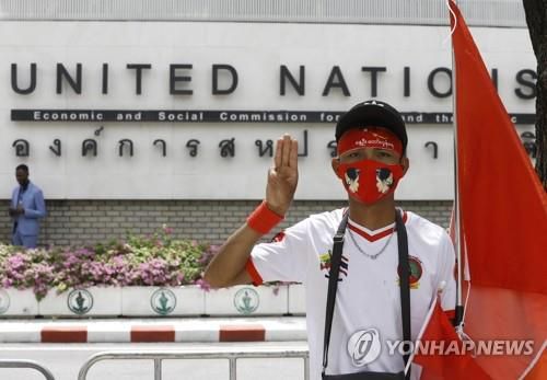 태국서 반정부 시위하는 미얀마 국민. 기사 내용과 직접 관련 없음. |