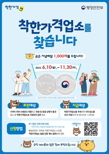 착한가격업소는 업주가 직접 신청할 수 있으며, 행정안전부의 확대 계획에 따라 평소 이용하던 저렴한 가게들을 누구나 직접 추천도 가능하며, 추천한 업소 가운데 5개소 이상 신규 지정된 발굴자에게는 11월 말까지 순은 기념 메달 및 인증서를 제공하는 대국민 이벤트를 진행한다.