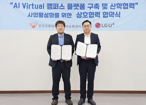 (서울=연합뉴스) 조현영 기자 = LG유플러스[032640]가 예비 교사의 교육 실무 역량을 높이는 대학 메타버스 플랫폼 구축을 위해 진주교대와 업무협약을 체결했다고 22일 밝혔다.