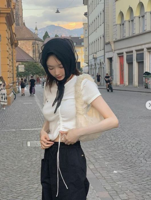 공개된 사진 속 강민경은 여행지에서 휴양을 즐기는 모습. 흰색 반팔 상의와 검은색 바지를 매치하며 캐주얼한 스타일링을 선보인 그는 호수 등을 배경으로 포즈를 취하며 청순한 분위기를 자랑해 시선을 모은다.