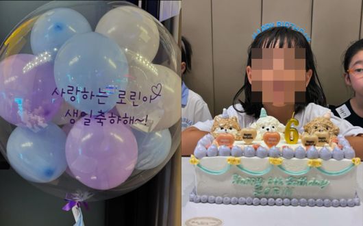 사진 속 유진의 둘째 딸 로린 양은 생일파티를 하고 있는 모습이다. 유진은 파티 풍선 및 커스텀 케이클 로린 양의 여섯 번째 생일을 축하했다.