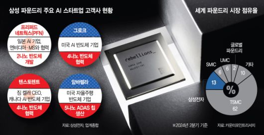 또한 리벨리온과 지근거리에서 협력하며 만든 생산 노하우로 차세대 먹거리인 AI 시장에서 수주를 이어가고 있다. 삼성 파운드리는 올해 일본 최대 AI 스타트업 PFN과 2나노 AI 칩 개발 과제를 시작했다. 반도체 업계의 전설로 불리는 짐 켈러가 이끄는 텐스토렌트, 리벨리온의 경쟁사이기도 한 그로크의 4나노 AI 칩 생산을 수주하면서 TSMC를 바짝 추격하는 모습이다.