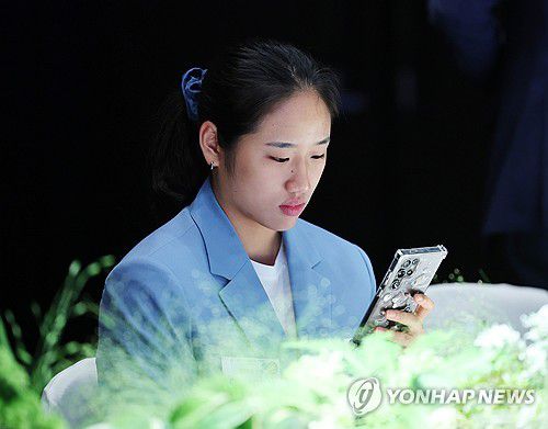 (서울=연합뉴스) 홍해인 기자 = 2024 파리올림픽 배드민턴 여자 단식 금메달리스트인 안세영이 22일 서울의 한 호텔에서 열린 '2024 파리올림픽 선수단 격려 행사'에 참석, 행사 시작을 기다리고 있다. 2024.8.22 [대통령실통신사진기자단]