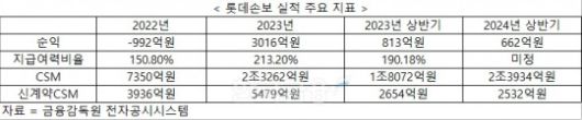 롯데손보는 2024년 상반기 영업이익 840억원·당기순이익 663억원의 잠정 경영실적을 기록했다.