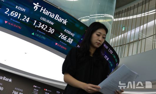 [서울=뉴시스] 고범준 기자 = 23일 오전 서울 중구 하나은행 딜링룸 전광판에 지수가 표시되고 있다. 2024.08.23. bjko@newsis.com |