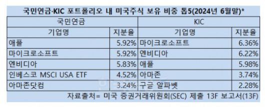 반면, 엔비디아, 마이크로소프트(MS), 애플, 알파벳(구글), 아마존, 메타, 테슬라 등 빅테크주로 구성된 이른바 '매그니피센트7(M7)'에 대해서는 투자 방향이 달랐다. 국민연금의 경우 주도주 비중을 좀 더 늘렸고, 반면 KIC는 차익실현 양상이 나타났다.