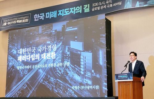 박 시장은 이날 오전 부산 해운대구 동서대 센텀캠퍼스에서 한국정치학회가 '한국 미래 지도자의 길'을 주제로 마련한 서울·부산시장 특별대담회에 참석해 대한민국의 잠재성장률 저하, 초저출산 문제, 격차사회 확대 등을 국가적 위기의 근본 원인으로 수도권 일극주의를 지목했다.