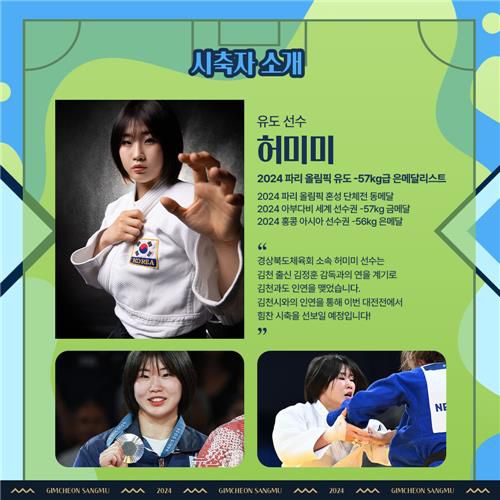 (서울=연합뉴스) 설하은 기자 = 2024 파리 올림픽 유도 은메달리스트 허미미(경북체육회)가 프로축구 김천상무의 경기에서 시축한다.