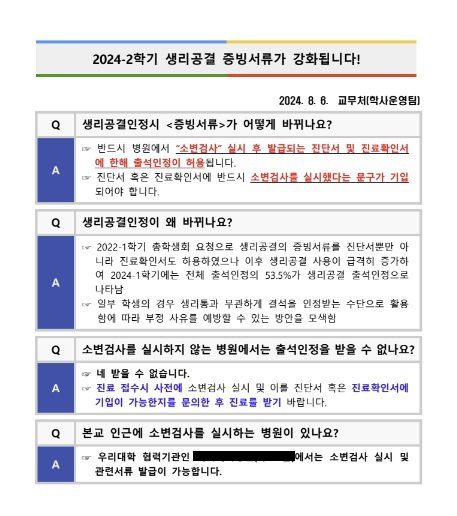 논란 열흘 만에 소변 검사 의무화를 철회한 대학측은 “책임 의식을 느낀다”면서도 “소변 검사와 생리가 의학적으로 상관 관계가 없다는 판단 하에 철회하는 것”이라고 해 다른 방식의 증빙을 요구할 여지는 남겼다. 초점은 여전히 여성의 생리공결제 악용에 맞춰져 있다. 생리공결 사용을 어렵게 해 제도가 필요한 여성이 활용하지 못하는 상황에 대한 우려는 여기에 우선하지 못하는 것이다.