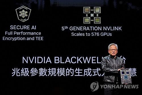 블렉웰에 대해 소개 중인 엔비디아 젠슨 황 최고경영자(CEO) |