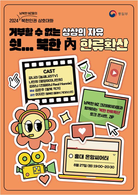 이번 행사에는 탈북민 패널로 △강나라(놀새나라TV, 구독자 36만) △나민희(평양여자 나민희, 구독자 13.3만) △김은주 작가(통일부 북한인권증진위원)가 출연하고, 남한 출신 패널로 김하늬(‘진짜하늬 Real Hanie’, 구독자 8.7만) 등이 출연한다.