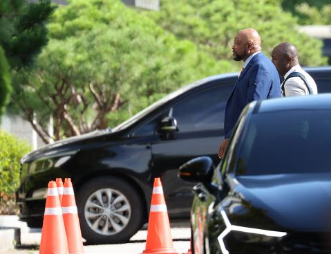 제12차 한미 방위비분담특별협정(SMA) 체결을 위한 4차 회의에 참석하는 협상단이 25일 오전 회의 장소인 서울 동대문구 한국국방연구원으로 들어서고 있다.(사진=연합뉴스) |