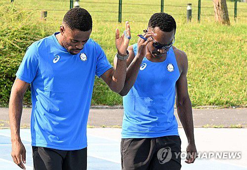 아탕가나는 난민팀 기수로 선정돼 가이드 러너 도나드 은딤 니암주아와 함께 패럴림픽 기를 든다.