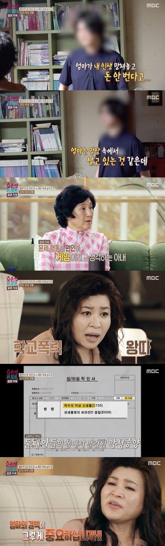 친구와 외출했던 둘째 아들의 귀가 후 계속되는 아내와의 언쟁으로 예민해진 집안 분위기. 결국 싸우기 싫다며 아내에게 방 안에 들어가라고 욕설을 뱉는 아들의 언행에 2차 언쟁이 시작됐다. 아내는 아들이 상의 없이 외출한 데 있어서 불만을 표현하는 걸 넘어 돈만 쓰러 다닌다며 날 선 어조로 대화를 이어갔다. 이에 분노한 아들은 아내의 대화는 소통이 아니라 강요라며 “내가 이야기나 하면 들어준 적 있어?”라고 오랫동안 상처받은 마음을 표출했다. 수그러들지 않는 두 사람의 고성에 자폐가 있는 첫째 아들은 불안에 떠는 모습까지 보였다. 모자의 대화를 지켜보는 MC들까지 어쩔 줄 몰라 하며 발을 굴렀다.