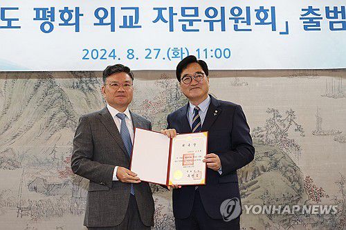(서울=연합뉴스) 임형섭 기자 = 우원식 국회의장은 27일 '국회 한반도 평화외교 자문위원회' 출범식을 열었다.
