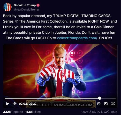 트루스 소셜에 올라온 디지털 카드 판매 홍보 영상 [트루스 소셜 캡쳐. 재판매 및 DB 금지] |