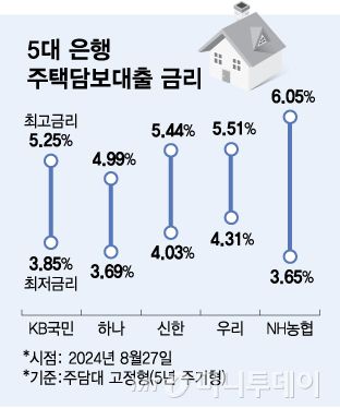 5대 은행 주택담보대출 금리/그래픽=김다나 |