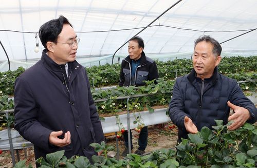 일조량 부족 피해를 본 딸기 시설원예 농가를 찾은 윤병태 나주시장 |