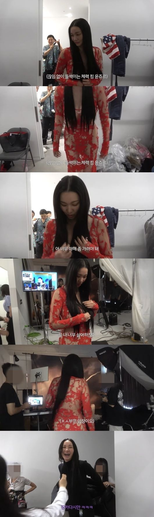 촬영 감독은 "너무 야하다"며 놀랐고, 장윤주 역시 "어 너무 야해. 좀 가려야 된다. 지금 여기를 이렇게 가려줘야 된다"며 긴 머리카락으로 가슴 부위를 숨겼다.