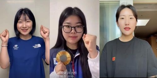 (파리=연합뉴스) 김경윤 기자 = 2024 파리 올림픽에서 금메달을 딴 '사격 3총사' 반효진(대구체고), 양지인(한국체대), 오예진(IBK기업은행)이 2024 파리 패럴림픽에 출전하는 장애인 사격 대표팀 선수들에게 응원 메시지를 보냈다.