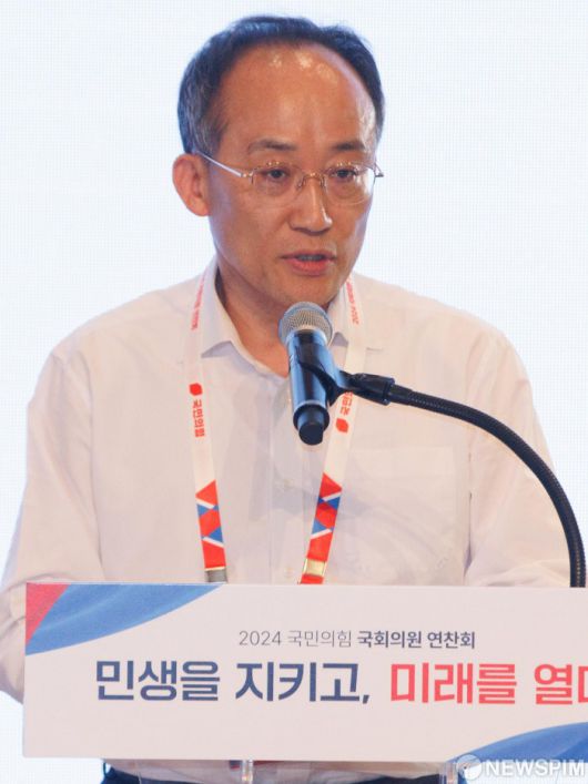 [인천=뉴스핌] 윤창빈 기자 = 추경호 국민의힘 원내대표가 29일 오후 인천 중구 인천국제공항공사 인재개발원에서 열린 2024 국민의힘 국회의원 연찬회에서 개회사를 하고 있다. 2024.08.29 pangbin@newspim.com