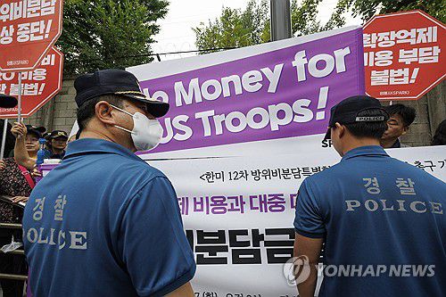 한미 방위비 협정 중단 촉구 회견 개최 두고 경찰과 시민단체 갈등 |