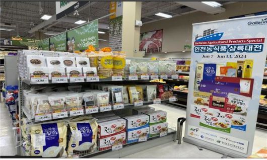 인천시는 올해 6월 캐나다 토론토에 위치한 한인마켓 중 가장 규모가 큰 욕밀(YORKMILLS)점에 인천 농식품 상설판매장을 개장해, 3월에 수출한 강화섬 쌀(20톤)과 농식품 가공류 등 35개 품목을 판매하고 있다.