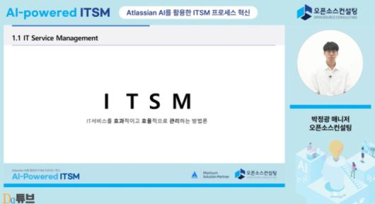 오픈소스컨설팅의 박정광 세일즈 매니저는 <디지털데일리> 웨비나플랫폼 'DD튜브'에서 'AI, ITSM을 만나다'를 주제로 진행된 발표에서 아틀라시안 에이아이(Atlassian AI)를 활용한 ITSM 프로세스 혁신 전략을 소개했다.