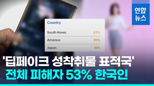 (서울=연합뉴스) 전 세계에 유포된 딥페이크 성착취물 피해자의 절반 이상이 한국 연예인이라는 해외 보안업체의 조사 결과가 나왔습니다.