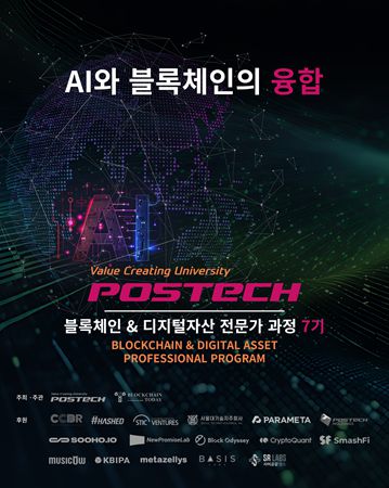 포스텍(POSTECH)이 블록체인과 디지털 자산, 인공지능(AI) 분야에 관심이 있는 이들을 대상으로 한 '블록체인 및 디지털자산 전문가 과정 7기' 수강생을 모집한다.