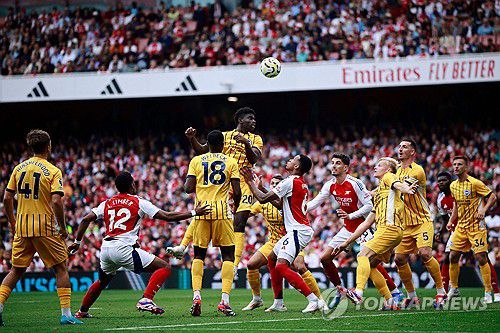 스페인 출신 미켈 아르테타 감독이 이끄는 아스널은 31일(한국시간) 영국 런던 에미레이츠 경기장에서 열린 2024-2025 프리미어리그 3라운드 브라이턴 앤드 호브 앨비언과의 홈 경기에서 전반 카이 하베르츠가 선제골을 넣어 앞서갔으나 후반 초반 잉글랜드 국가대표 미드필더 데클런 라이스의 경고 누적으로 수적 열세를 맞은 뒤 상대 공격수 주앙 페드루에 동점포를 내줘 1-1로 비겼다.