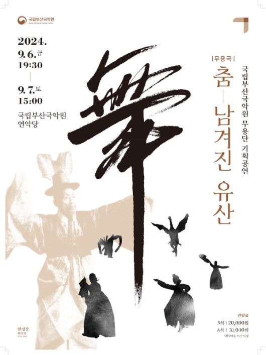 국립부산국악원(원장 이정엽)은 무용단 기획공연 '춤, 남겨진 유산'을 오는 6일(금), 7일(토) 양일간 연악당에서 개최한다.