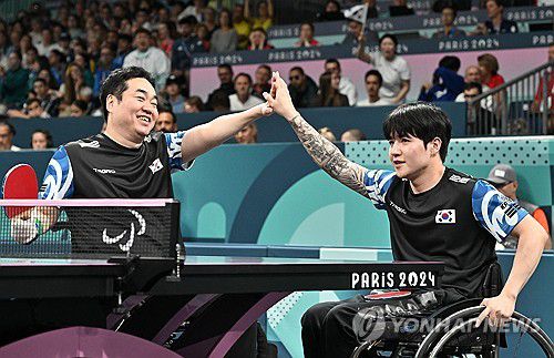 (파리=연합뉴스) 김경윤 기자 = 탁구 남자복식(스포츠등급 MD4) 장영진(31·서울특별시청)-박성주(45·토요타코리아)조가 생애 첫 패럴림픽 무대에서 값진 은메달을 목에 걸었다.