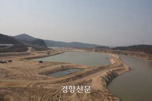 2011년 3월 12일 4대강사업으로 인한 준설사업으로 파괴된 경북 상주 경천교 주변의 모습. 경향신문 자료사진. |