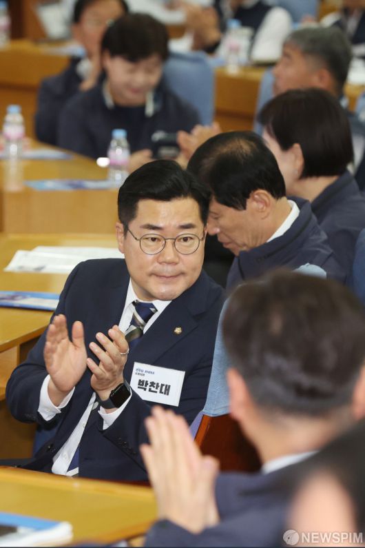 [서울=뉴스핌] 이형석 기자 = 박찬대 더불어민주당 원내대표가 2일 오전 서울 여의도 국회 의원회관에서 열린 노동존중실천단 출범식에서 박수를 치고 있다. 2024.09.02 leehs@newspim.com