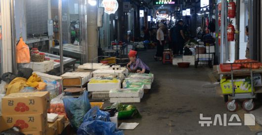 [전주=뉴시스] 김얼 기자 = 추석 연휴를 2주일 앞둔 2일 전북 전주시 모래내시장이 찾는 시민들 없이 한산한 모습을 보이고 있다. 2024.09.02. pmkeul@newsis.com |