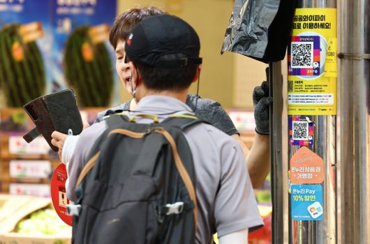 추석 연휴를 앞둔 1일 오전 서울 동대문구 청량리 종합시장에서 한 소비자가 모바일 온누리상품권을 사용하고 있다. 뉴시스 |